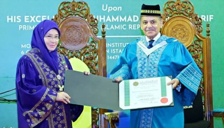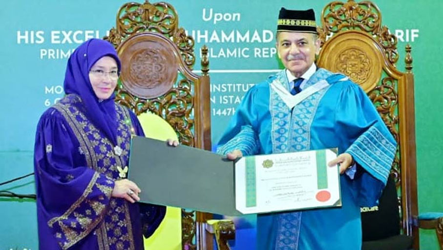 وزيراعظم شهباز شريف کي ملائيشيا ۾ پي ايڇ ڊي ليڊر شپ اينڊ گورننس جي اعزازي ڊگري سان نوازيو ويو آهي. ليڊر شپ اينڊ گورننس جي اعزازي ڊگري انٽرنيشنل اسلامڪ يونيورسٽي آف ملائيشيا طرفان ڏني وئي. پاڪستاني وزيراعظم کي ملائيشيا جي رياست پهانگ جي راڻي ۽ يونيورسٽي جي آئيني سربراهه اعزازي ڊگري سان نوازيو. رياست جي راڻي پهانگ انهي موقعي تي چيو ته وزيراعظم شهباز شريف کي بهترين حڪمراني تي اعزازي ڊاڪٽريٽ عطا ڪرڻ اعزاز آهي، پنجاب ايجوڪيشن انڊوومنٽ فنڊ مان هزارين شاگرد فيضياب ٿيا. هن چيو ته شهباز شريف ثابت ڪيو ته حقيقي قيادت طاقت نه، مقصد سان عبارت آهي. وزيراعظم شهباز شريف چيو ته انٽرنيشنل اسلامڪ يونيورسٽي آف ملائيشيا جي اعزازي ڊگري حاصل ڪرڻ اعزاز آهي. هن چيو ته مسلمان دنيا جي بهترين درسگاهه سان جڙڻ تي خوشي آهي، درسگاهه، ايمان ۽ اخلاق کي گڏ ڪري اعليٰ تعليم جي مقصد کي اڳيان وڌائي رهي آهي. وزيراعظم چيو ته چئن ڏهاڪن کان وڌيڪ پنجاب جي عوام جي خدمت ڪئي، هن وقت به بطور وزيراعظم پنهنجن ماڻهن جي خدمت ڪري رهيو آهيان، مان هميشه خلوص نيت ۽ ثابت قدمي سان عوام جي خدمت ڪندو آهيان. هن چيو ته پاڪستان ۽ ملائيشيا جي وچ ۾ علمي تعاون کي وڌيڪ مضبوط ڪرڻ جو خواهشمند آهيان، اسلامي اصولن تي عمل ڪندي سموري دنيا ۾ وڃايل مقام ٻيهر حاصل ڪري سگهون ٿا. وزيراعظم تقرير جي دوران علامه اقبال جو شعر به پڙهي ٻڌايو. وزيراعظم چيو ته قيادت فخر جوڳي ڳالهه نه پر هڪ امانت آهي. اسان جي ذميواري آهي ته نوجوانن کي انسانيت جي خدمت لاءِ موقعا فراهم ڪريون. هن چيو ته اڄ مسلمان امت کي تڪرارن، غربت ۽ انتشار کي منهن ڏيڻو پئجي رهيو آهي.