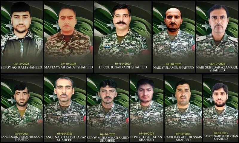 شهيدن ۾ نائب صوبيدار اعظم گل(خيبر) نائيڪ عادل حسين(ڪرم) نائيڪ گل امير(ٽانڪ) لانس نائيڪ شير خان(مردان)، لانس نائيڪ طالش فراز(مانسهره) لانس نائيڪ ارشاد حسين(ڪرم) سپاهي طفيل خان(مالاڪنڊ) سپاهي عاقب علي(صوابي) ۽ سپاهي محمد زاهد(ٽانڪ) شامل آهن.